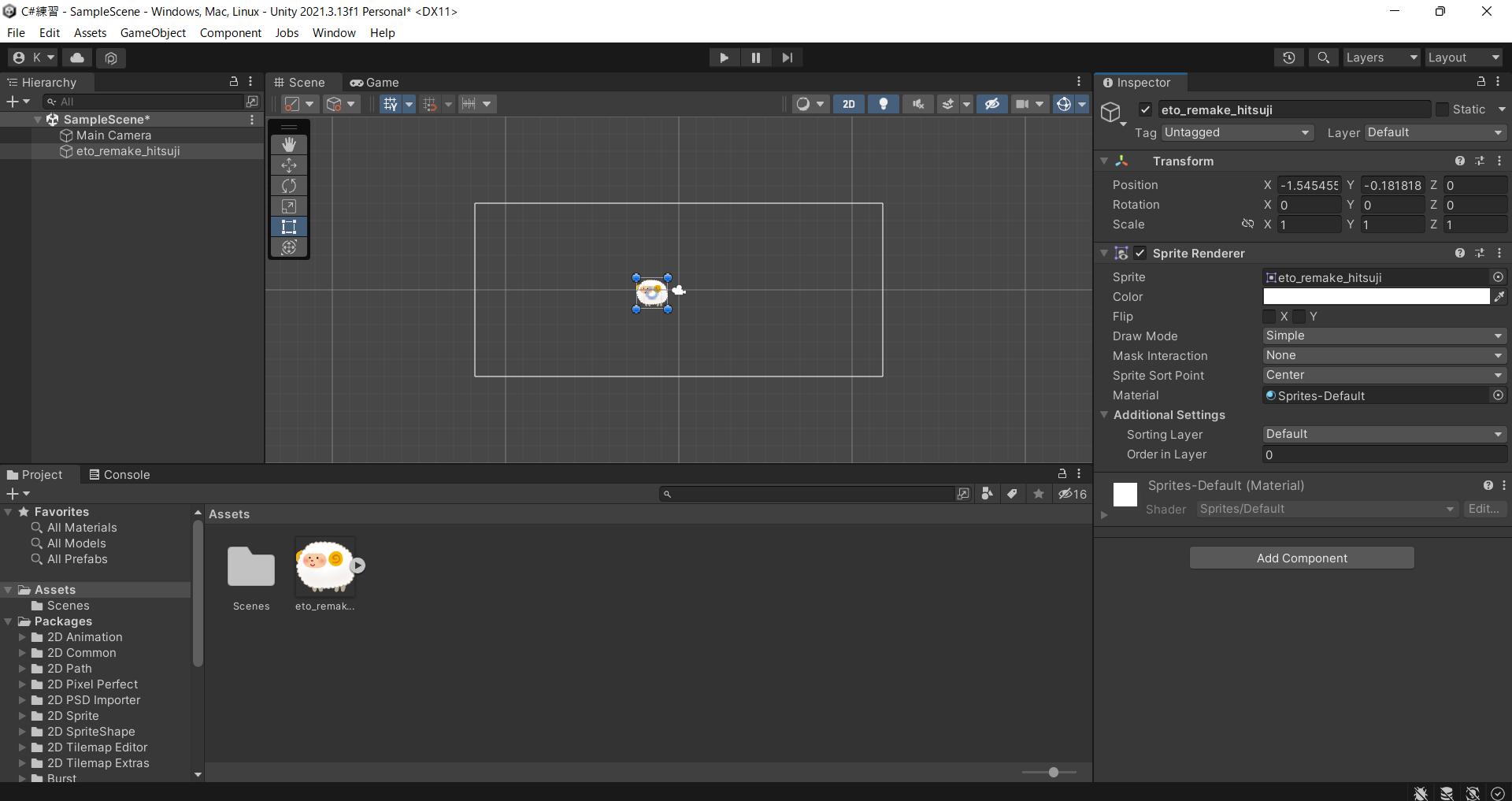 ひつじをシーン上でドラッグすると、TransformのPositionが動くのがわかるでしょうか。