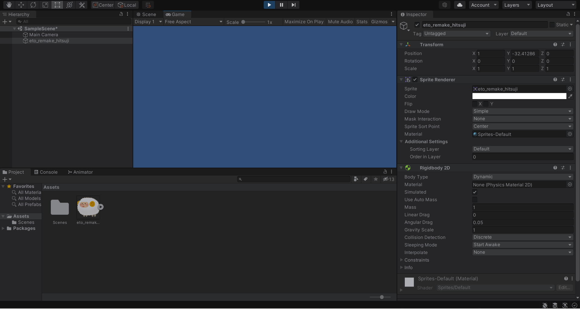 ひつじが青い画面の上で浮いているだけの謎のゲームができました。