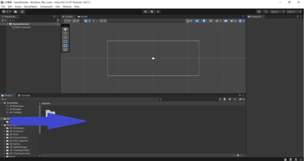 先ほども書きましたが、プロジェクトタブはゲームの素材を管理する場所です。