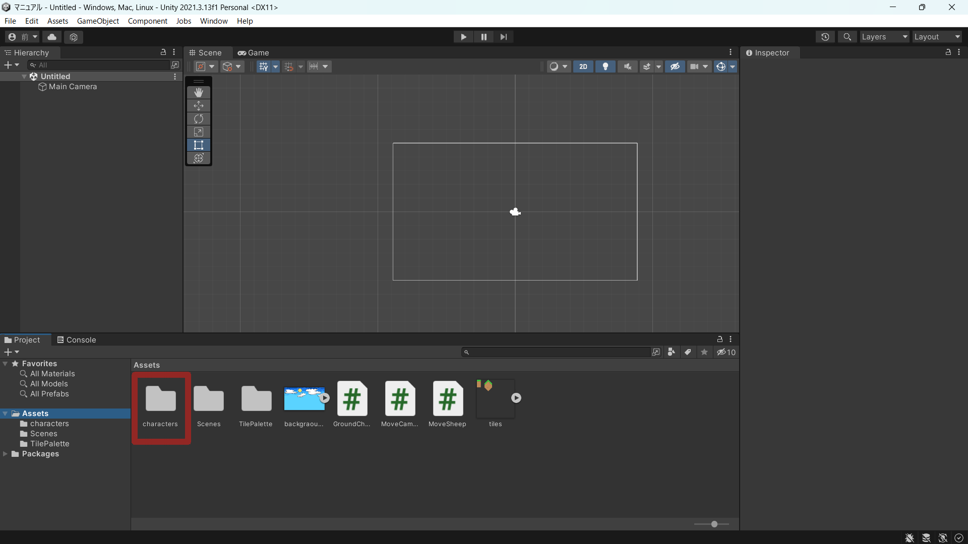 試しに、上の画像はCharactersフォルダというものを作って、その中に入れておきましょう。