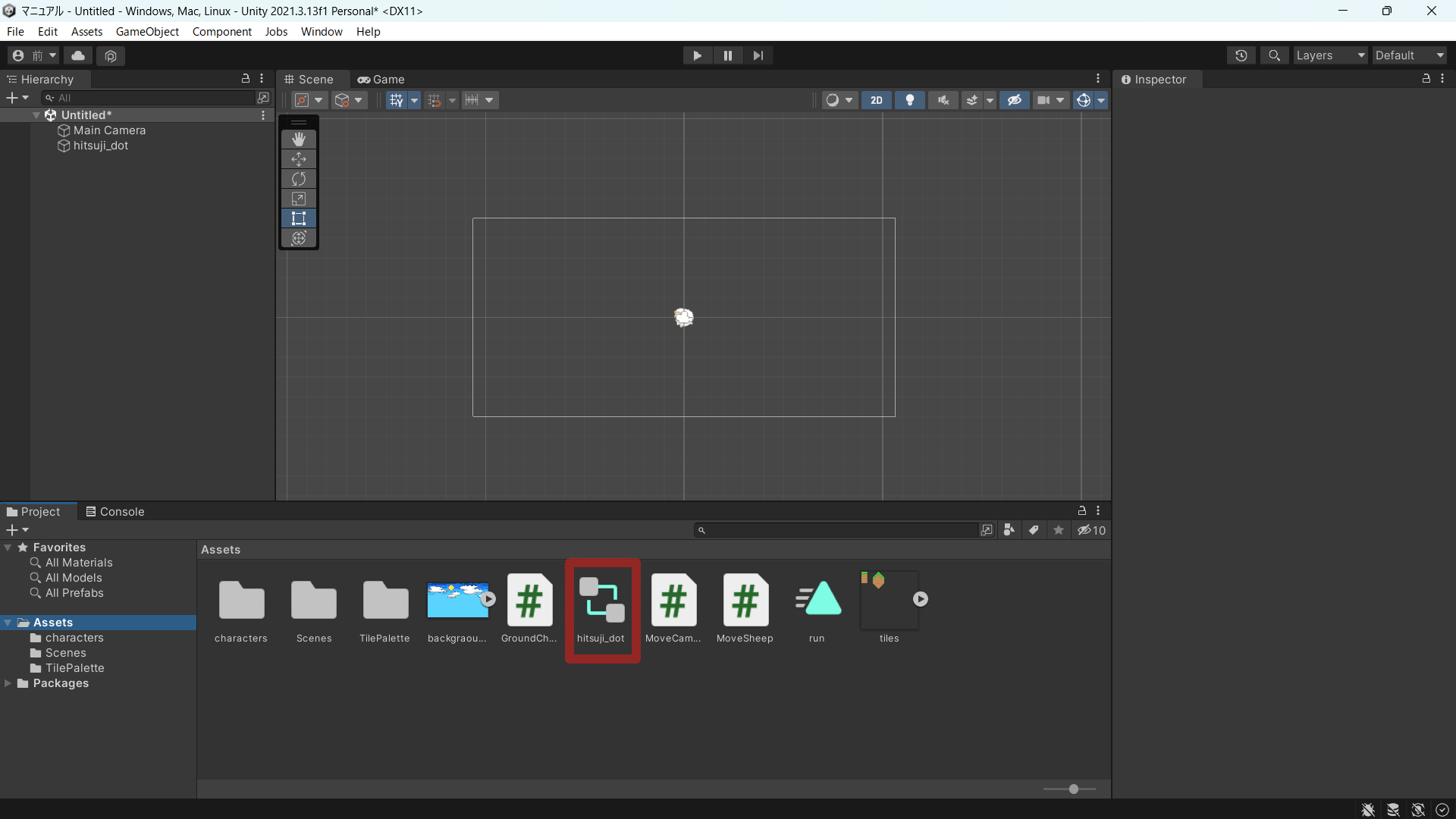 このstandにはhitsuji_dotという画像一つを付けておきましょう。これで立ち絵の完成です。