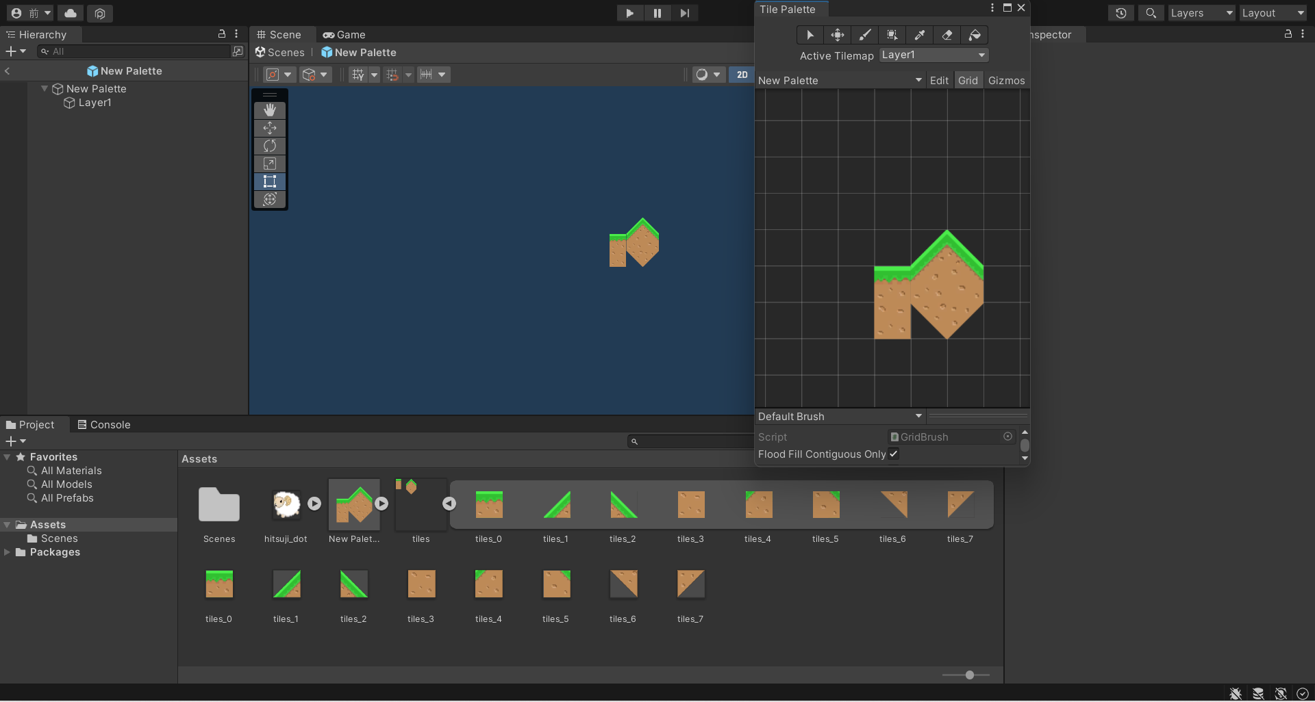 その後、Tilepalatteの画面から、Create New Paletteを押して、新しいパレットを作成してください。特にこだわりがなければ、そのまま保存してください。