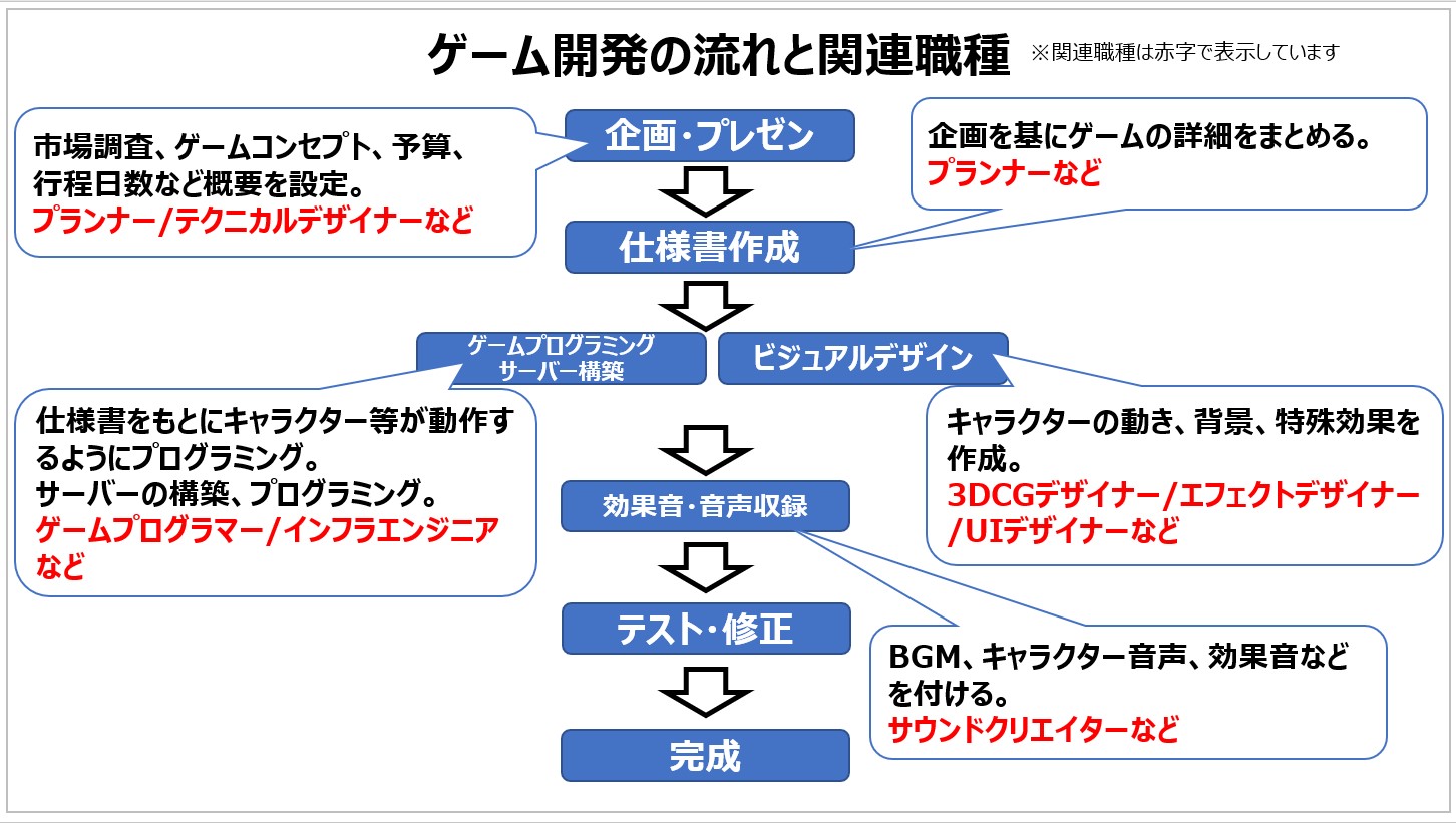 ゲーム制作、ないしは共同制作、なんでもそうですが何かコンテンツを作る際には、ある程度決まった流れがあります。ここでは外部の資料を引用して説明します。