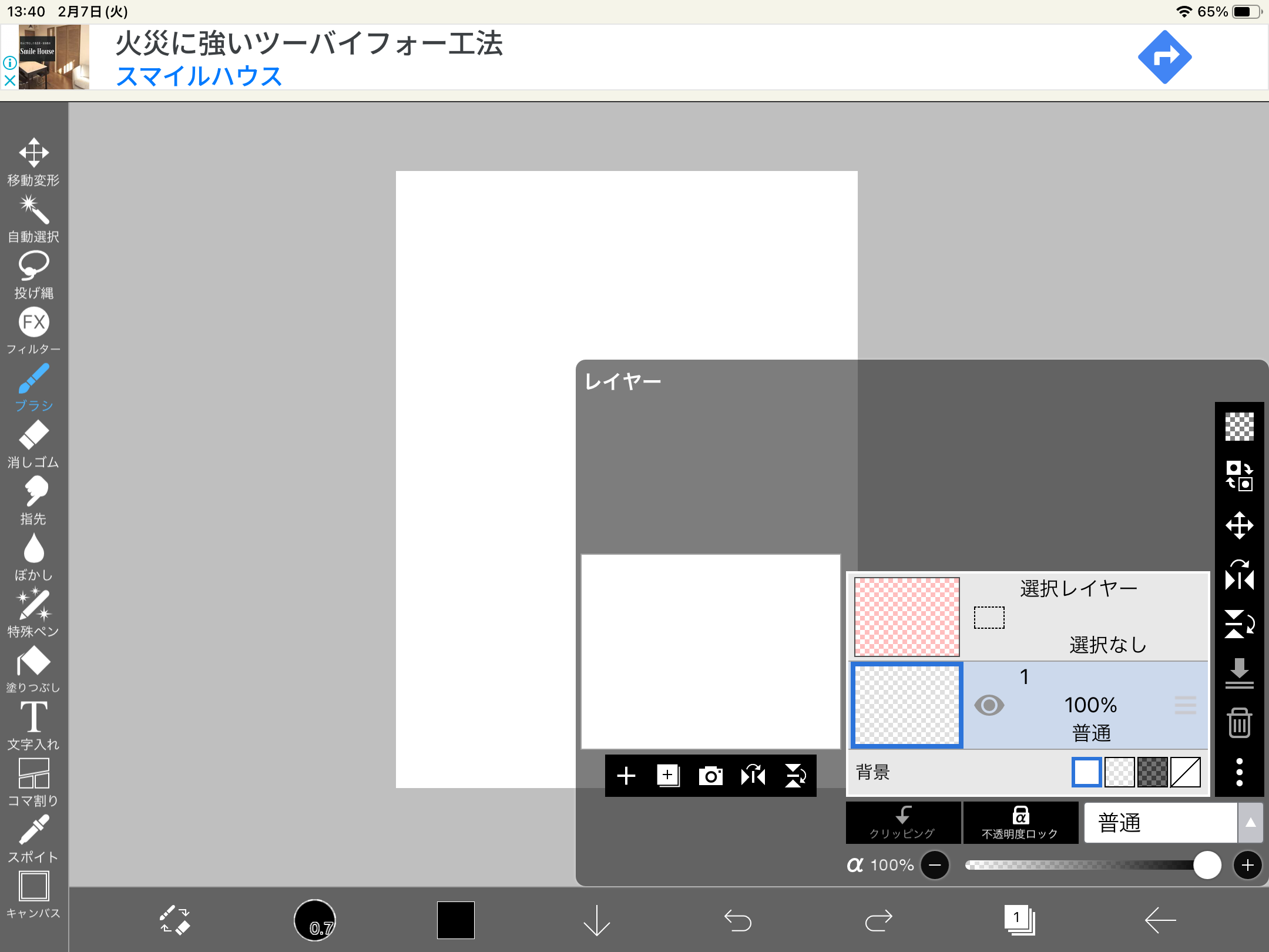 描画できるレイヤーがはじめに出ていないアプリ・ソフトでは、描画が可能なレイヤーを1枚追加します。