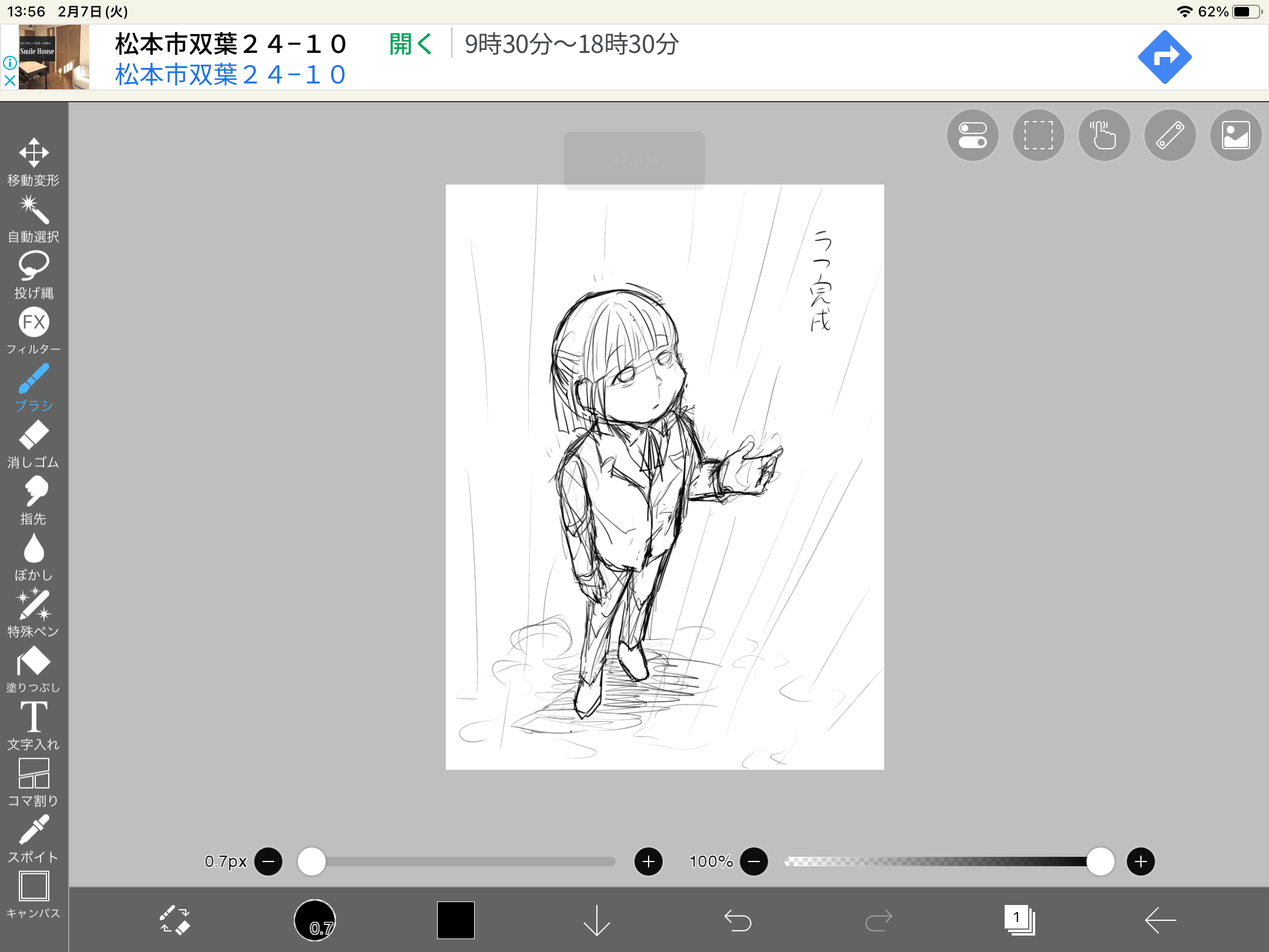 適当なペンを選択し、下書きをします。この下書きは「ラフ」と呼ぶことが多いです。